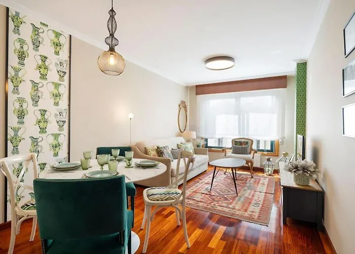 Precioso Apartamento Dos Dormitorios Con Garaje设有设施齐全的厨房和配咖啡机/煮茶器 和卫星频道平板电视的客房. 公寓距离阿里米拉海滩有5公里,距离加利西亚海洋博物馆有2.4公里,入住的旅客在该地区游览会很方便.